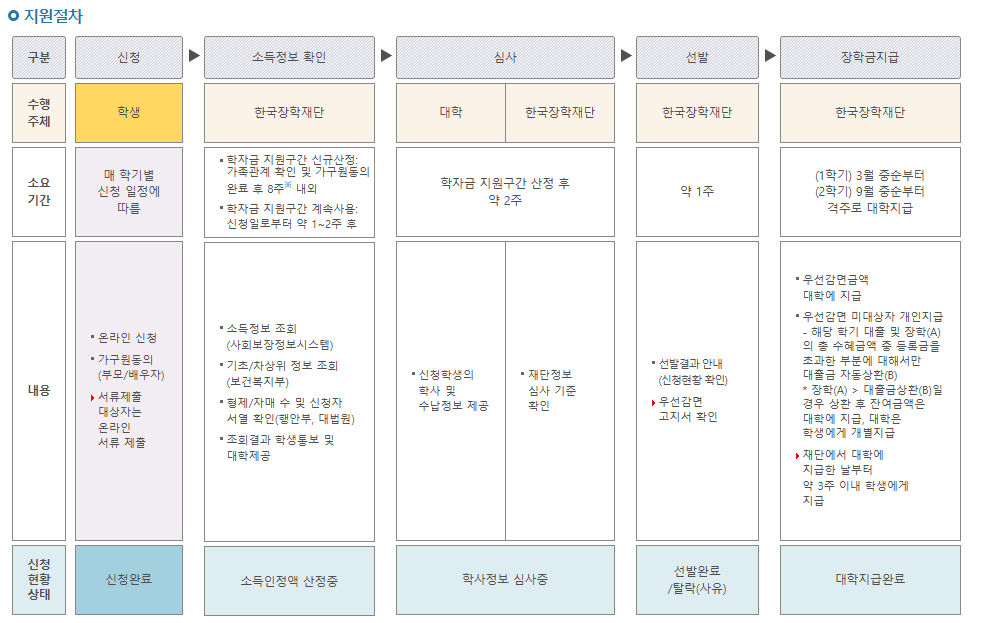 ✅ 심사 : 대학, 한국장학재단에서 지원구간 산정 후 2주 후 제공합니다.