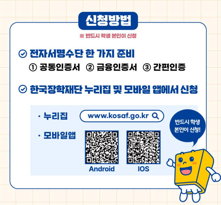 🔶 신청방법 : 한국장학재단 홈페이지에서 신청하실 수 있습니다.