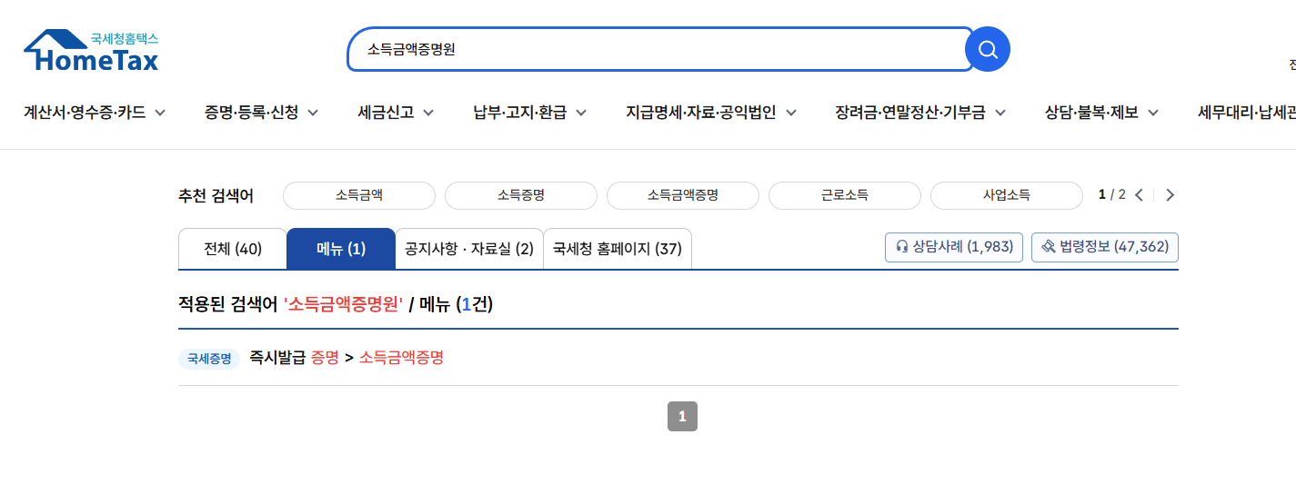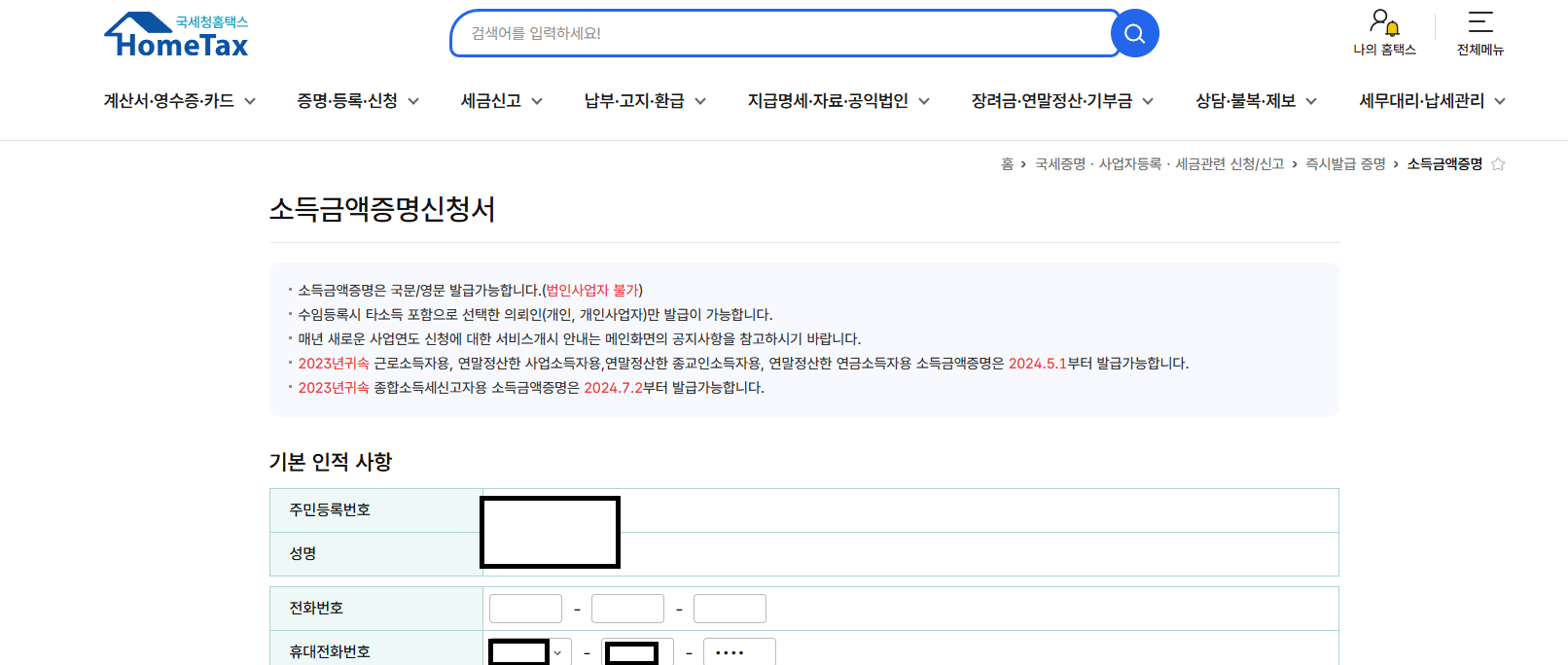 이렇게 지원금이 많이 상승된 모습을 볼 수 있습니다. 그렇다면 나의 기준 중위소득이 얼마인지 확인을 해 봐야 하겠죠? 받을 수 있는지 신청이 가능한지 여부를 확인하려면 셀프로 확인이 가능합니다. 바로 홈택스에서 소득금액증명원을 발급받으시면 됩니다. 이렇게 확인해야 하는 이유가 월급이 이렇다고 받을 수 있는 것이 아니라 근로소득 외에 사업소득, 재산, 부업소득등이 포함되어야 하기 때문입니다.